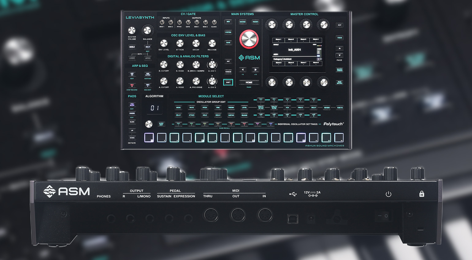 El ASM Leviasynth es un sintetizador híbrido extremadamente potente que lleva el concepto de síntesis algorítmica a nuevos niveles de potencia, flexibilidad y rendimiento. Con su enorme cantidad de formas de onda y algoritmos, y las múltiples maneras en que pueden comportarse e interactuar, el Leviasynth satisface un rango amplísimo de estilos y usos.
