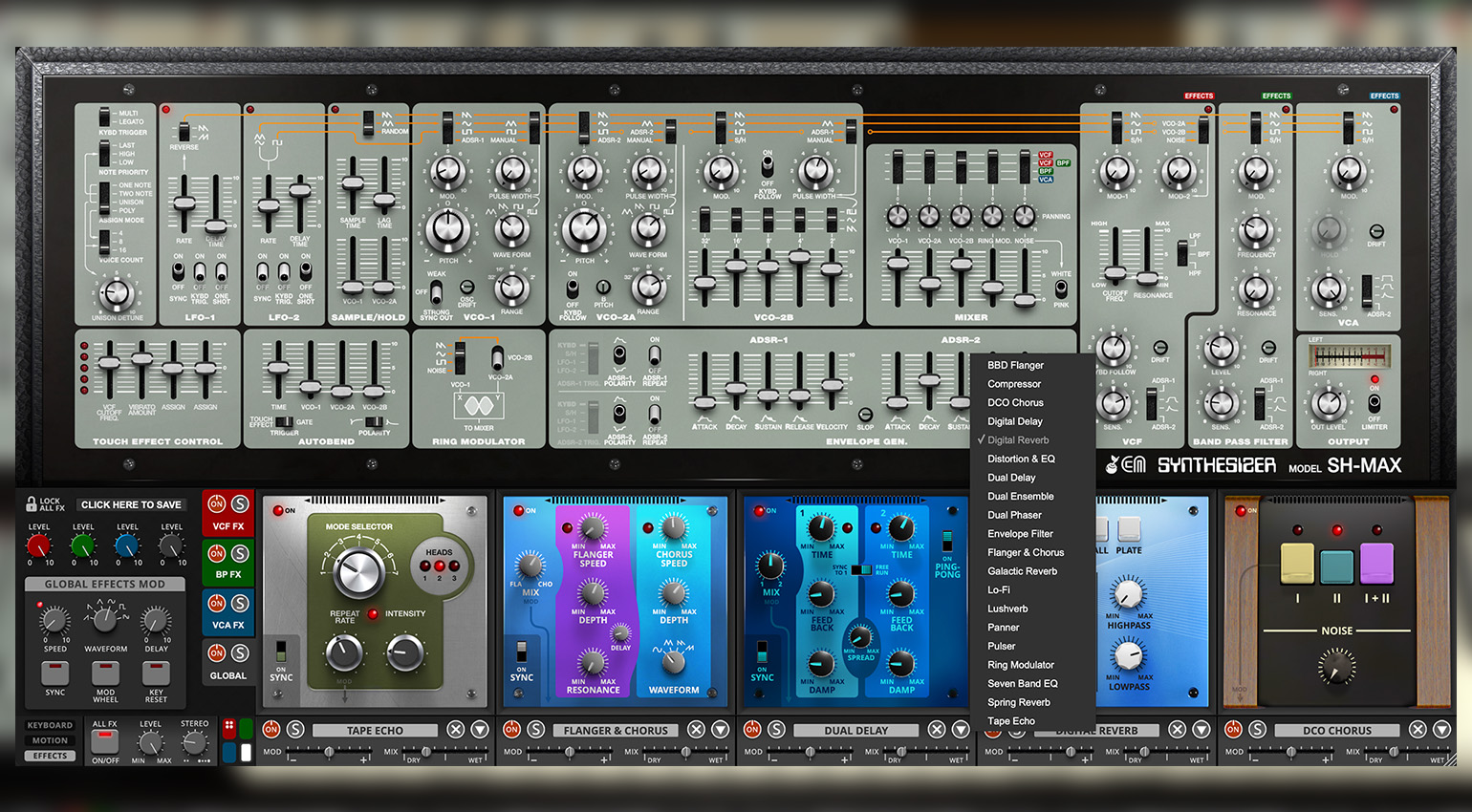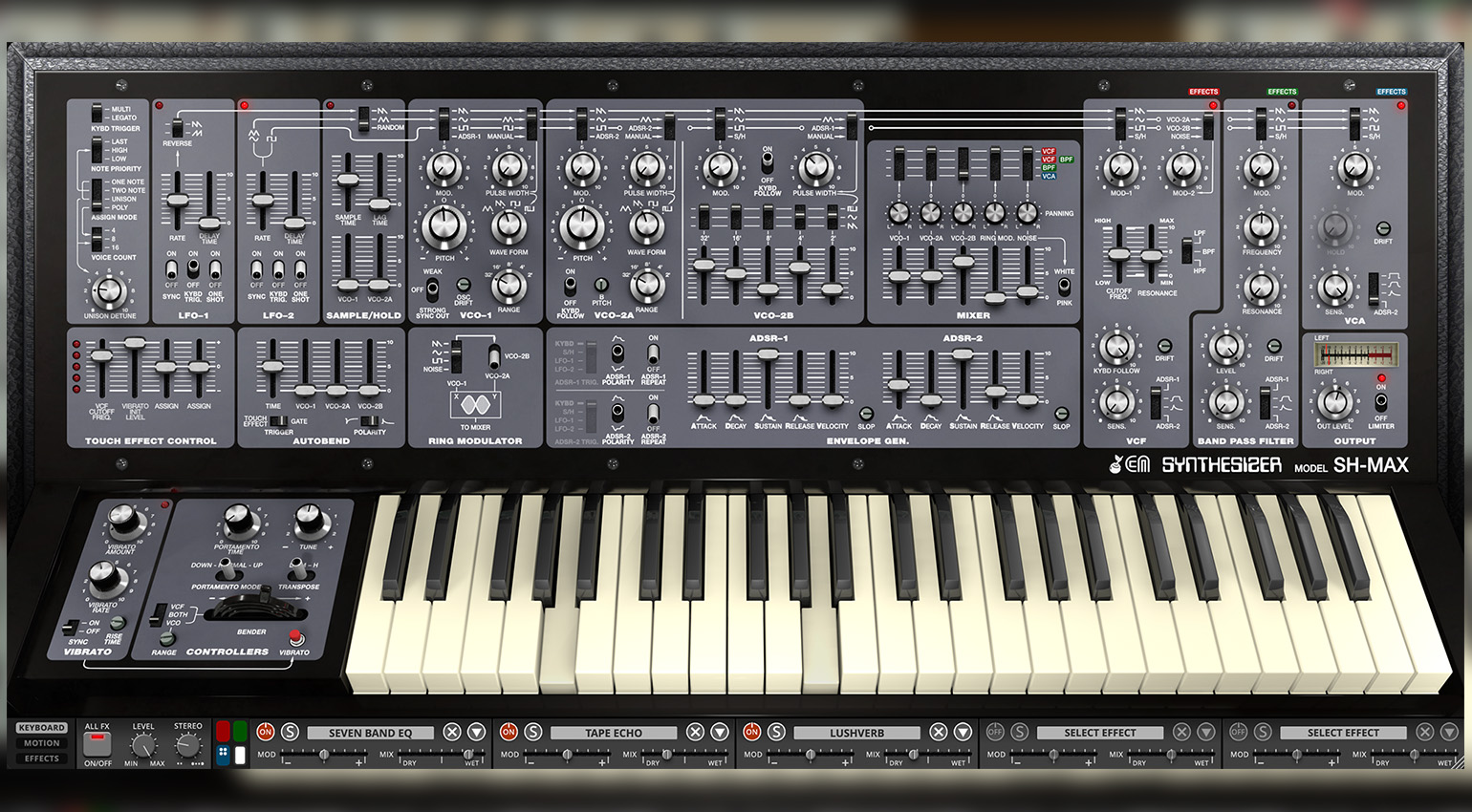 Cherry Audio SH‑MAX rinde homenaje a la a menudo olvidada serie SH de Roland reuniendo no uno, ni dos, sino tres clásicos en un solo instrumento.