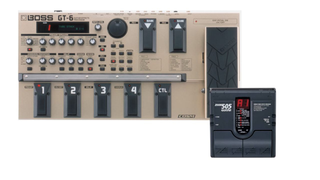 Desde ahí empecé a sentir un interés creciente por pedaleras ligeras, pequeñas, pero profesionales. Una búsqueda al principio infructuosa, ya que los 90 y los primeros 2000 no veían claro ese concepto de «pequeño y profesional»: en el mundo de los multiefectos, lo profesional tenía que ser grande (GT-6), y lo pequeño, para principiantes (Zoom 505 y similares). Seguramente había también razones técnicas (la informática no era tan microscópica como ahora), pero uno de los motivos era la filosofía de producto de la época.