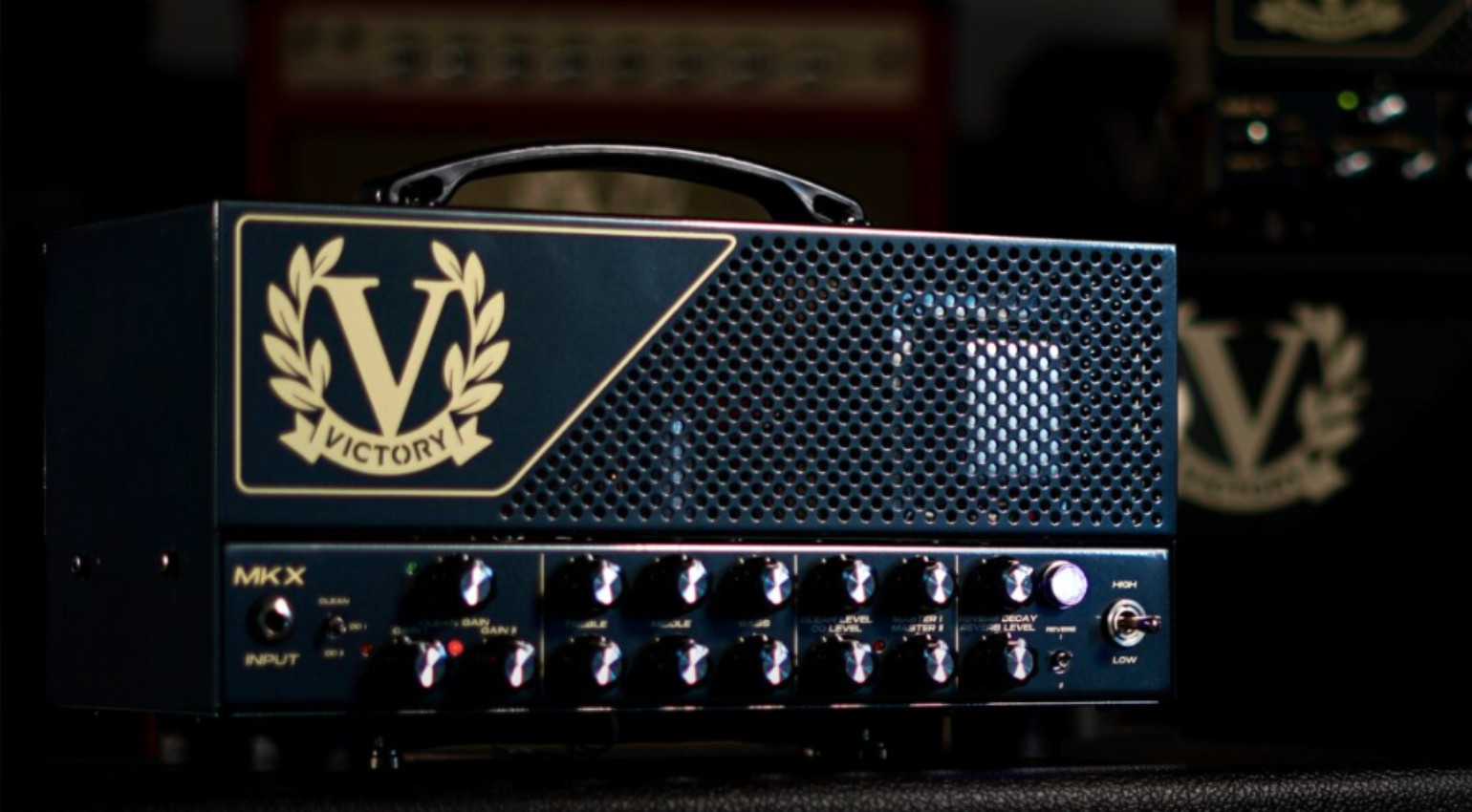 El Victory Amplification MKX está basado en gran parte en el MK Overdrive. Dispone de tres voces: Clean, Overdrive-1 y Overdrive-2, todas con 50 W de potencia. En el previo hay tres válvulas ECC83 que proporcionan una amplia gama de sonidos, desde crunch hasta high gain.